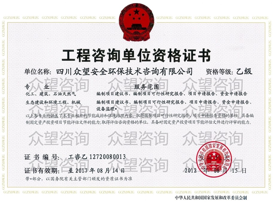 四川众望安全环保技术咨询有限公司 电 话:028-86258172/86258173/028-86258174/86258095 传 真:028-86258093/86258552